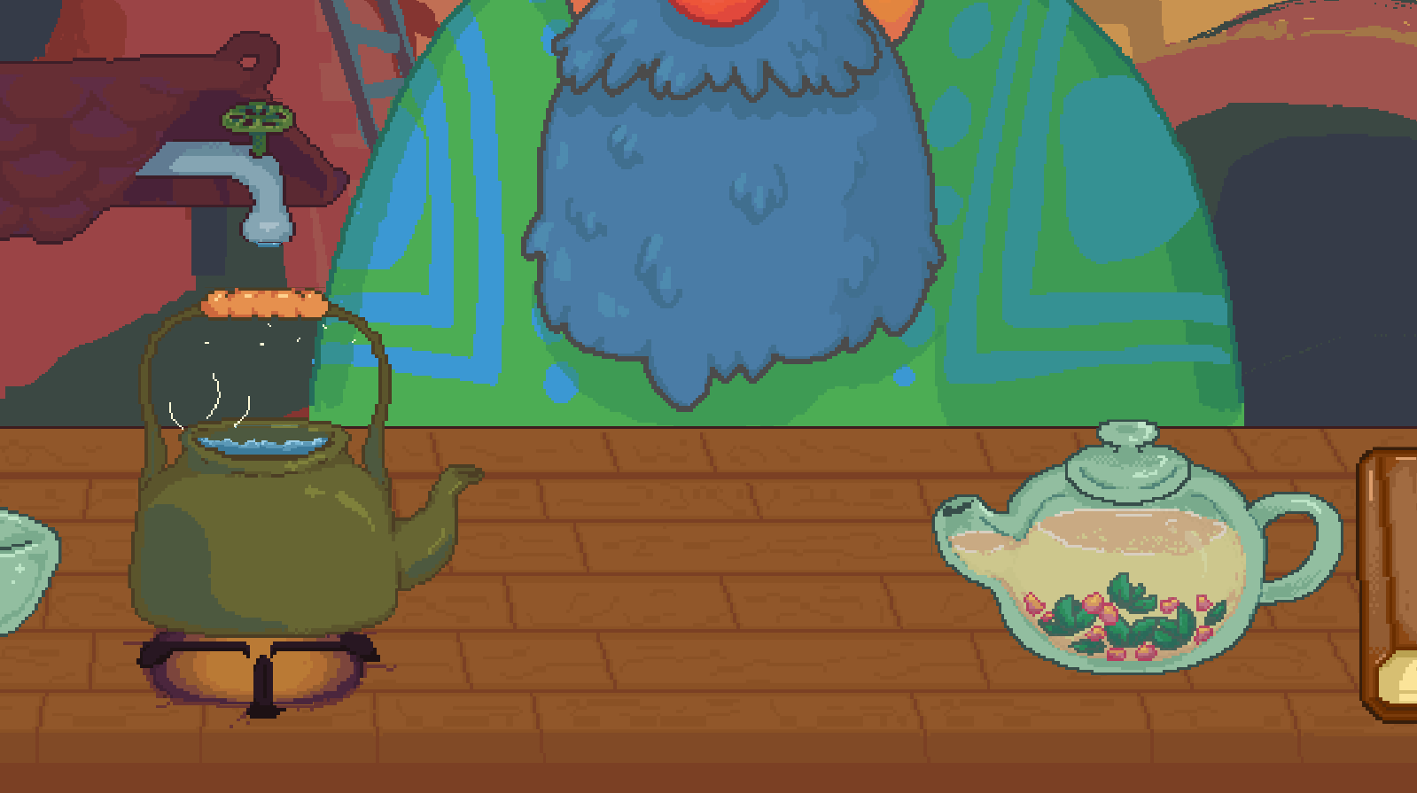 tisane is a cozy tea game, You play as Roi, a traveling tea merchant who can’t speak the same language as their customers. Roi seeks to make a difference by spreading the joys of tea!